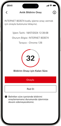İnternet Bankacılığı'ndan tüm işlemleri yapabilmeniz için Mobil Bankacılık uygulamamızı akıllı telefon ya da tabletinizle eşleştirmiş olmanız gerekmektedir. Mobil uygulamayı aktifleştirmiş müşterilerimiz İnternet Bankacılığı uygulamasına “Anında Bildirim” ile giriş yaparak tüm işlemleri kolaylıkla gerçekleştirebilirler.